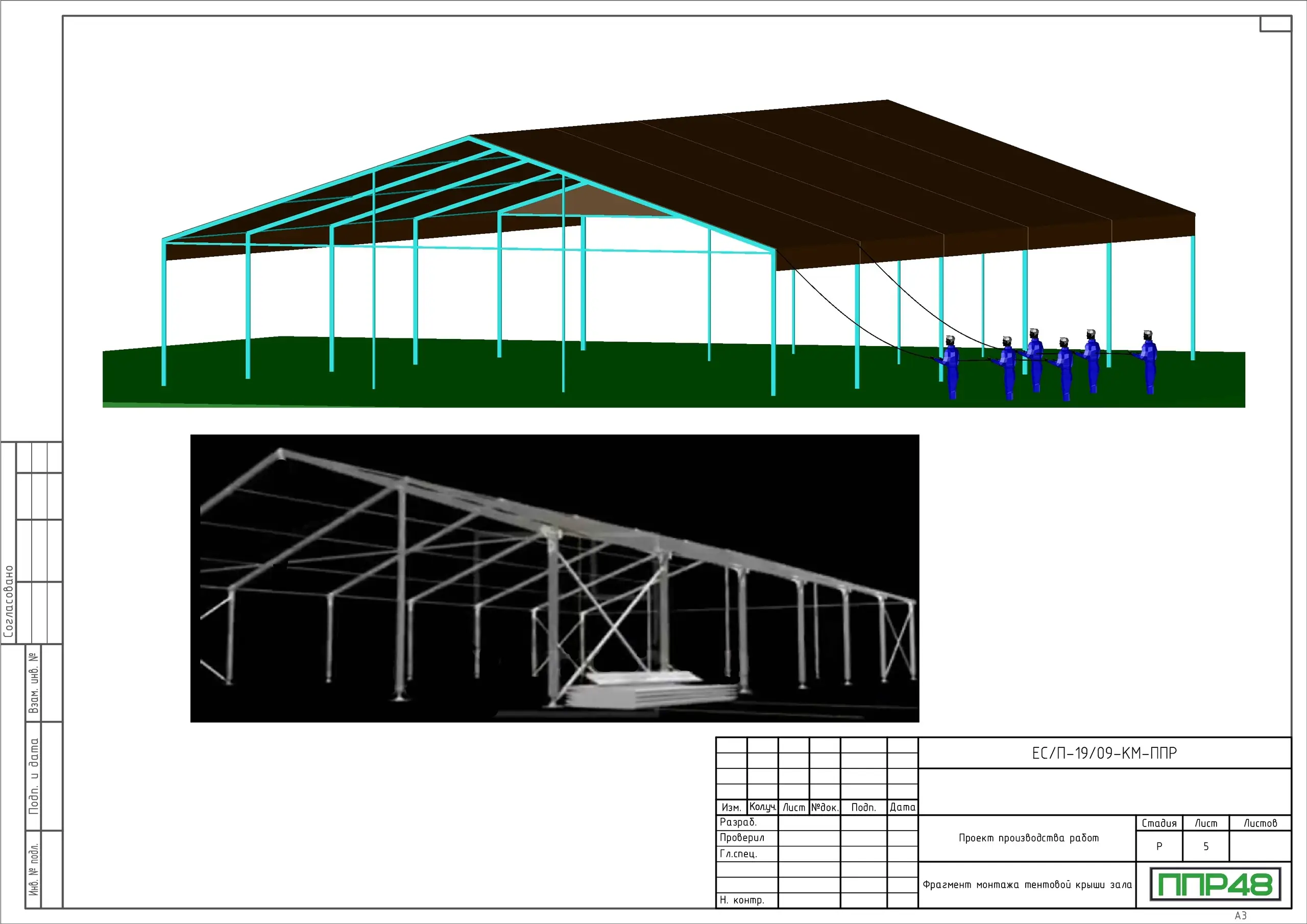 Сотрудниками ППР48 был разработан проект производства работ на монтаж выставочного зала. Также в рамках договора нами была выполнена 3D схема конструкции.
