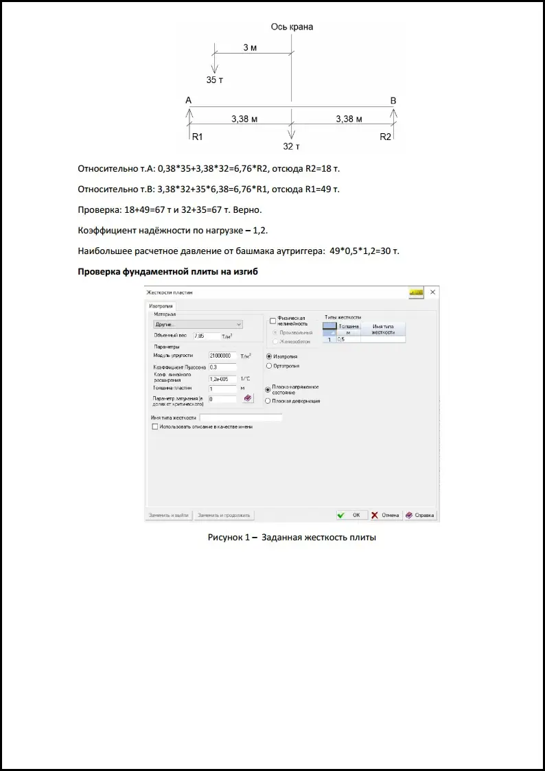 Продолжаем тему расчетов. На этот раз в составе ППРк. В связи со стесненными условиями производства работ, а также ограничением возможностей по выбору грузоподъемной техники было принято регшение о том, что перемещение карна будет осуществляться непосредстенно по поверхности фундаментной плиты, на что нашими специалистами был сделан соответствующий расчет. Данный расчет подтвердил, что фундаментная плита имеет возможность принимать на себя нагрузку от колес работающего крана и имеет запас прочности.