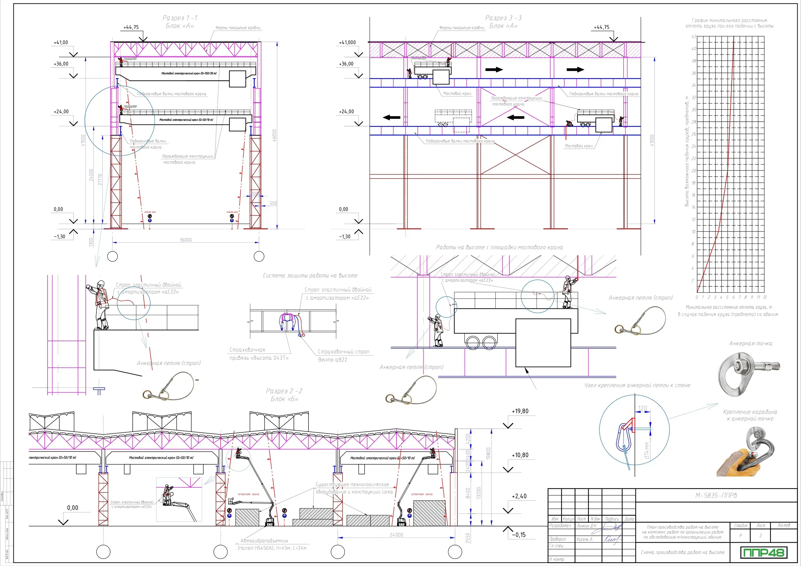 Специалистами нашей компании был разработан Проект Производства Работ на высоте с использованием мостового крана. Для выполнения мероприятий на высоте, связанных с ремонтом или строительством зданий и сооружений, часто используются переносные подъемники, строительные леса, а также мостовые краны. ППР на высоте (ППРв) с использованием мостового крана является эффективным способом выполнения работ на высоте, так как он обеспечивает быстрый и безопасный подъем рабочих и инструментов на нужную высоту.