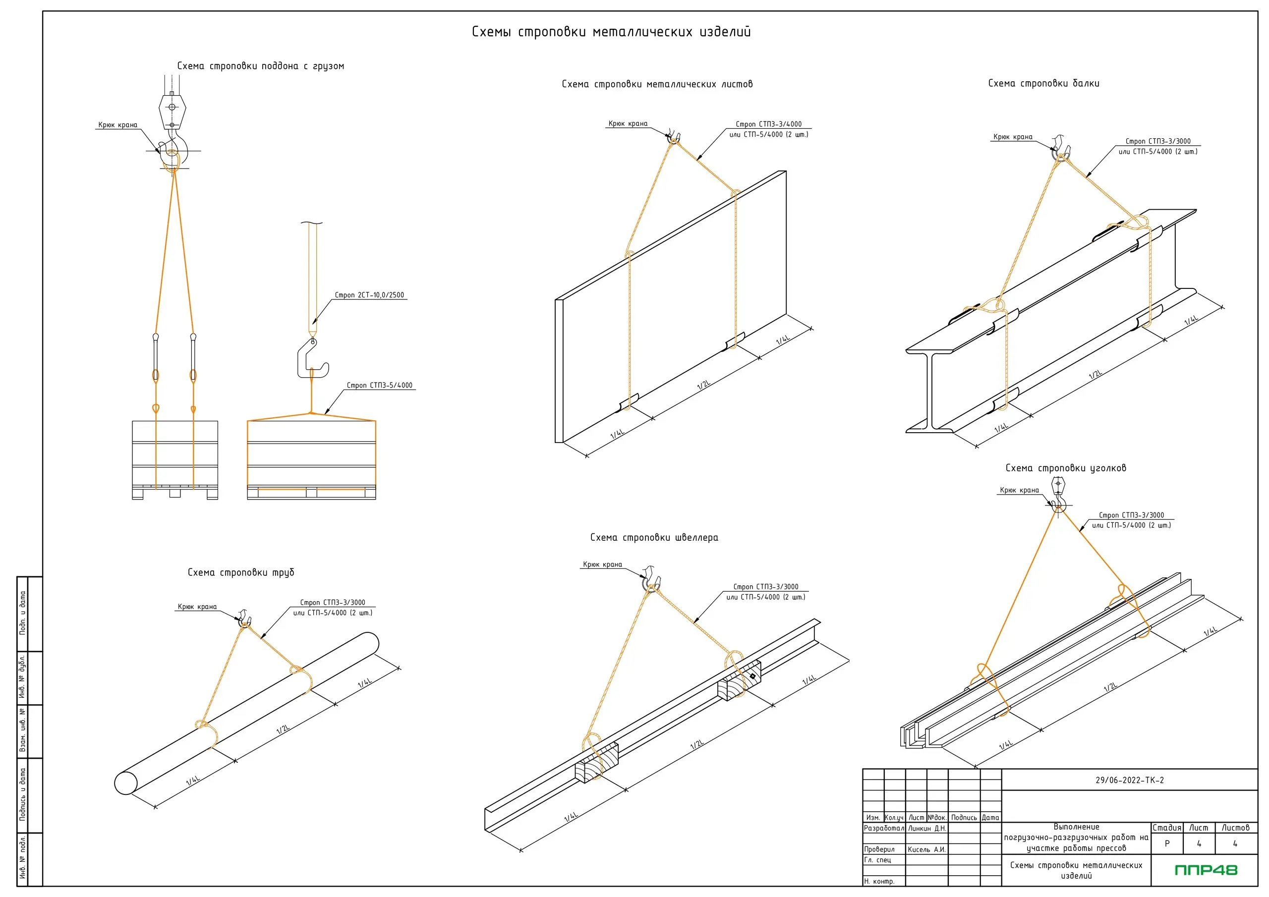 • Схемы строповки металлических изделий