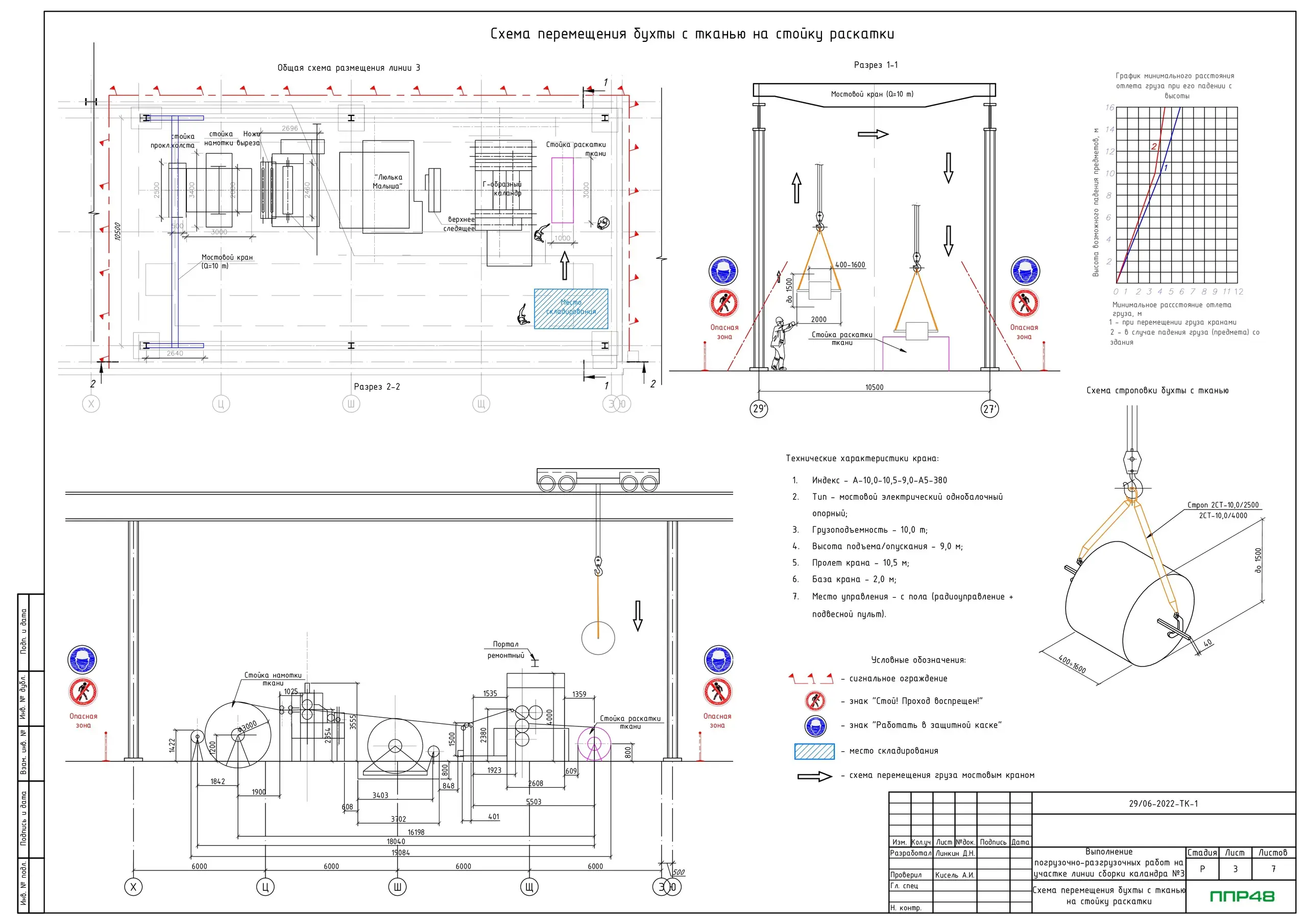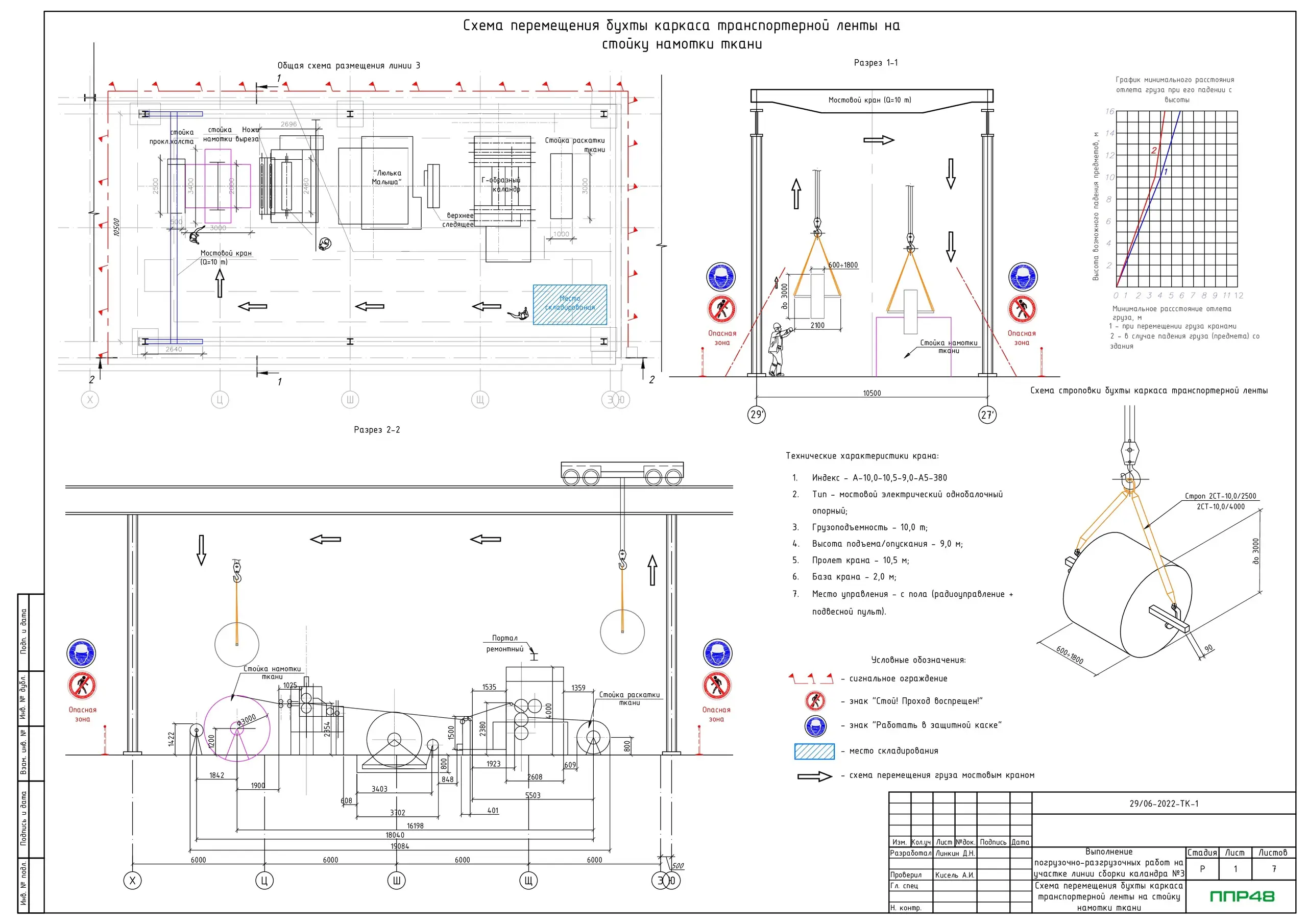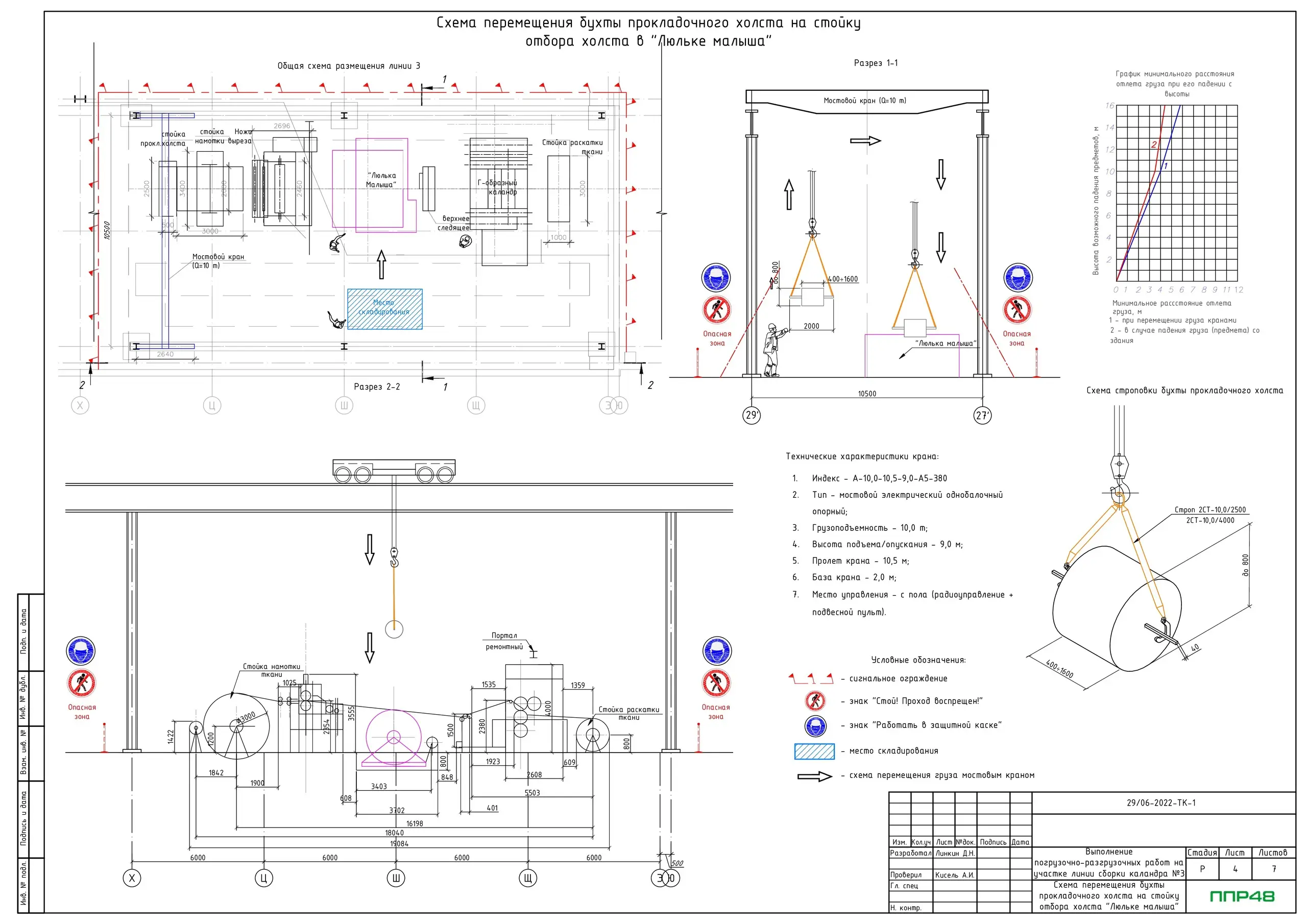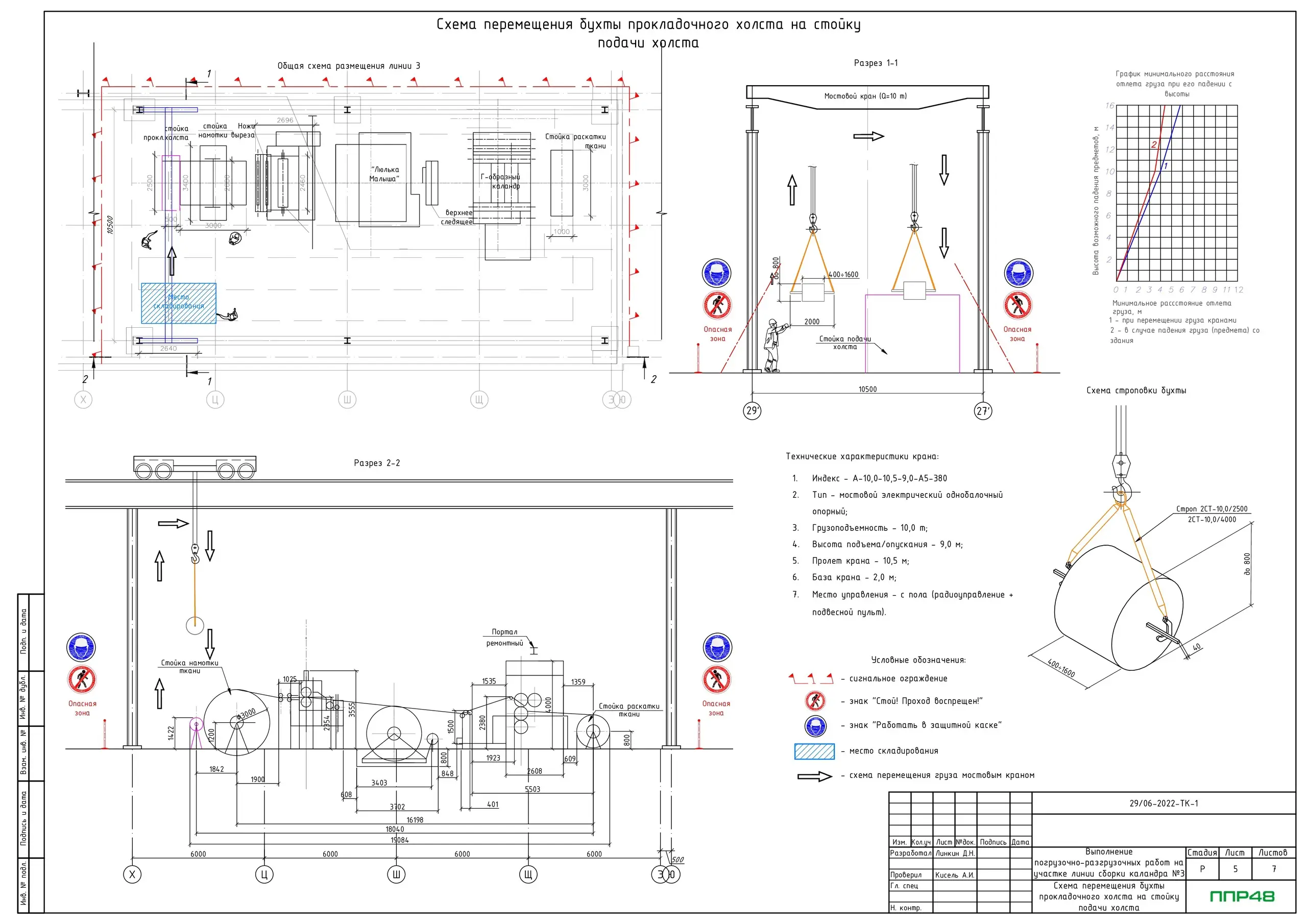 • Схема перемещения бухты с прокладочным холстом на место складирования