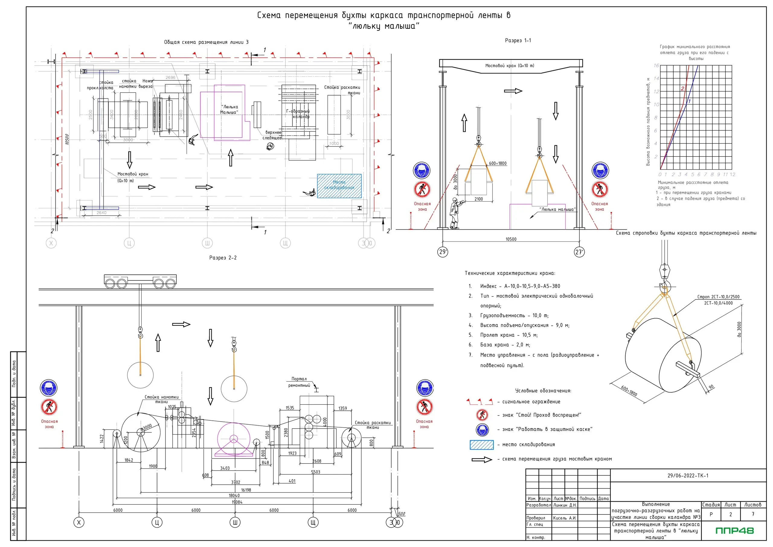 • Схема перемещения бухты каркаса транспортной ленты в "Люльку малыша"