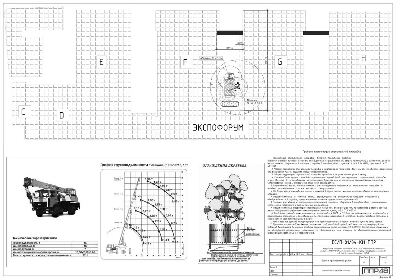 Настоящий проект производства работ (далее по тексту ППР) содержит практические рекомендации, целью которых является оптимизация строительных процессов, связанных с монтажом металлического каркаса временно-возводимого павильона QATAR PAVILION на объекте: центральная площадка проведения ПМЭФ-2019 Конгрессно-выставочного центра «ЭКСПОФОРУМ» Объект расположен по адресу: Петербургское шоссе, 64 к.1, лит. А, Санкт- Петербург. В проекте приведены указания по охране труда, контролю качества, снижению трудовых затрат, технологической последовательности выполнения строительных операций. 2. ППР предназначается для сотрудников строительной организации, осуществляющей работы по монтажу металлоконструкций: ИТР, производителей работ, бригадиров, рабочих. 3. В данный ППР включены следующие виды работ: подготовительные работы, погрузочно- разгрузочне работы, работы по укрупнительной сборке КМ, работы по монтажу каркаса павильона. 4. ППР разработан в соответствии с техническим заданием закзчика, рабочей документацией ЕС/П-01/04-ПЗ, ЕС/П-01/04-КМ-1, ЕС/П-01/04-КМ-2, ЕС/П-01/04-КМ-3. ППР соотвествует требованиям законодательства Российской Федерации и следующих нормативных документов: