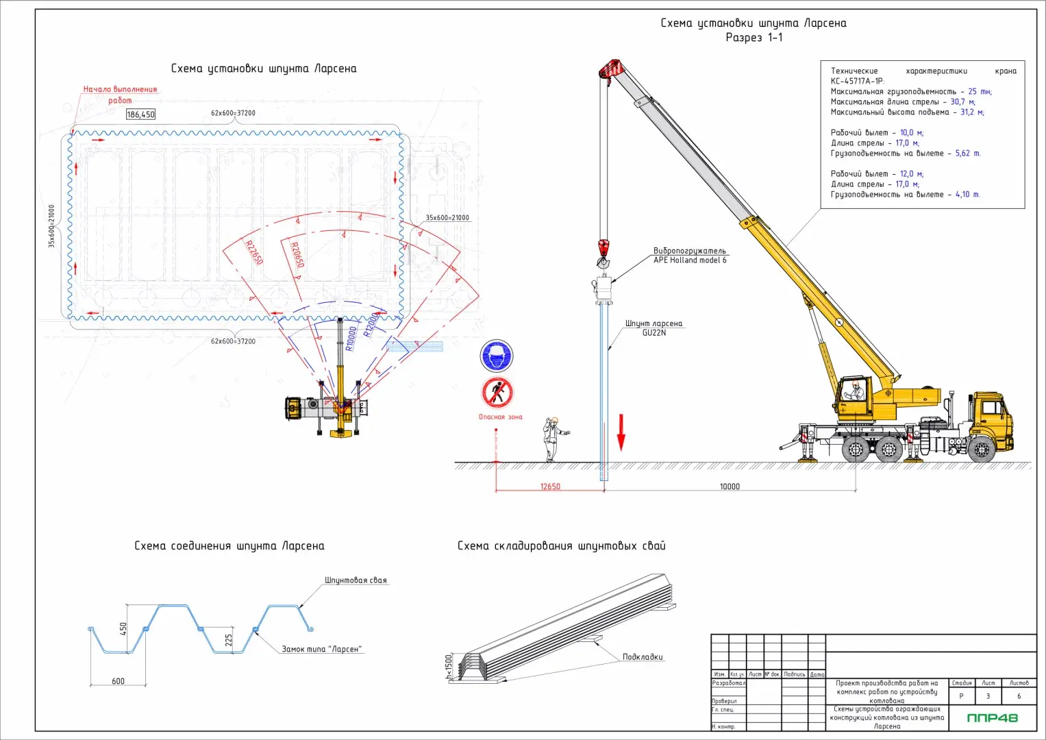 В стесненных условиях или при большой глубине заложения фундамента возникает необходимость в ограждении котлована. В большинстве случаев для этого используются шпунты Ларсена или трубы. Шпунт Ларсена погружают с помощью специального навесного оборудования, устанавливаемого на стрелу крана или экскаватора. Для устройства шпунта из стальных труб или железобетонных буронабивных свай используют специальные буровые установки. Этап закрепления откосов выемки - важный раздел в составе документа, требующий детальной проработки.