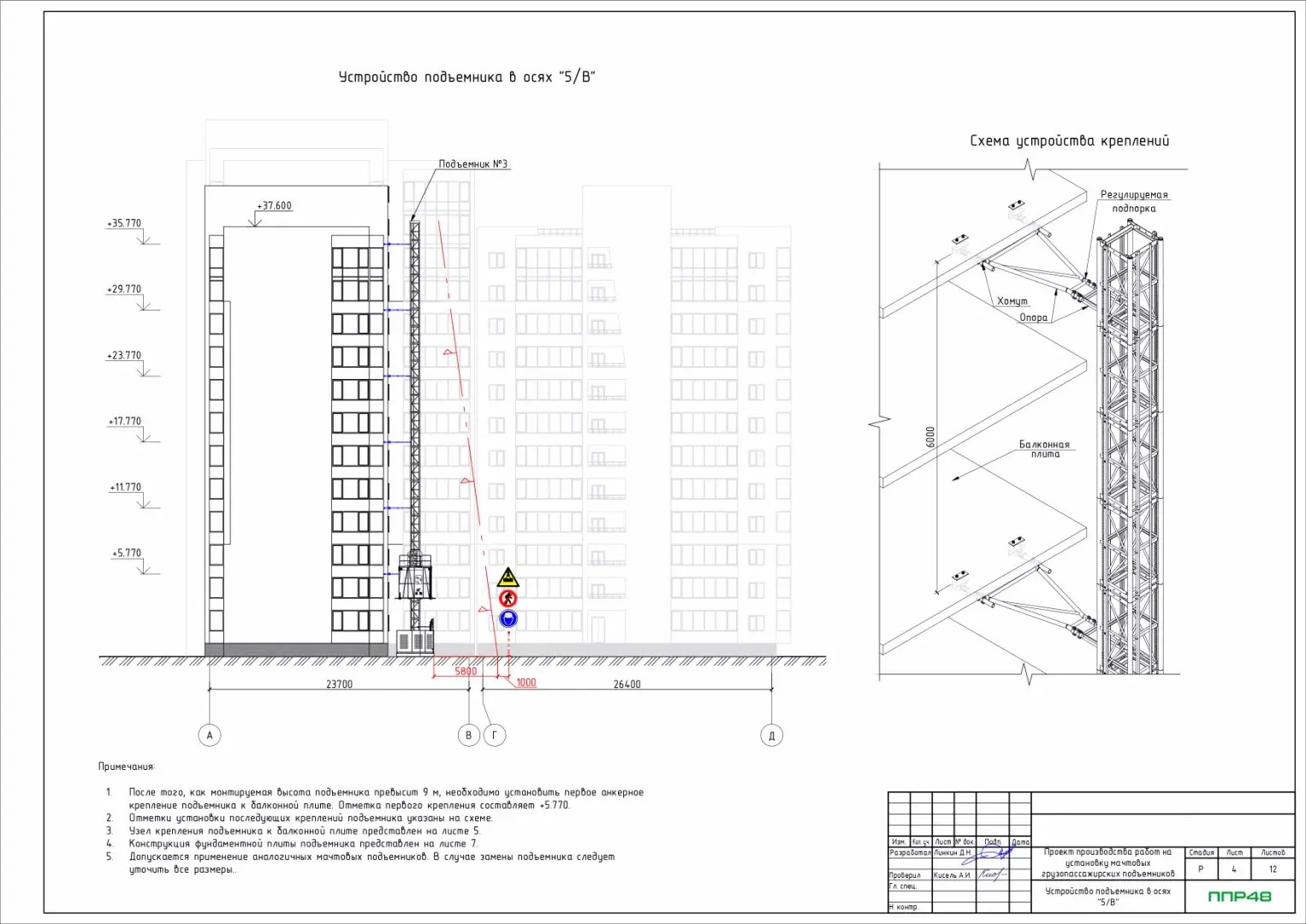 Особенности разработки ппр на мачтовый подъёмник, фасадный подъёмник, АГП.