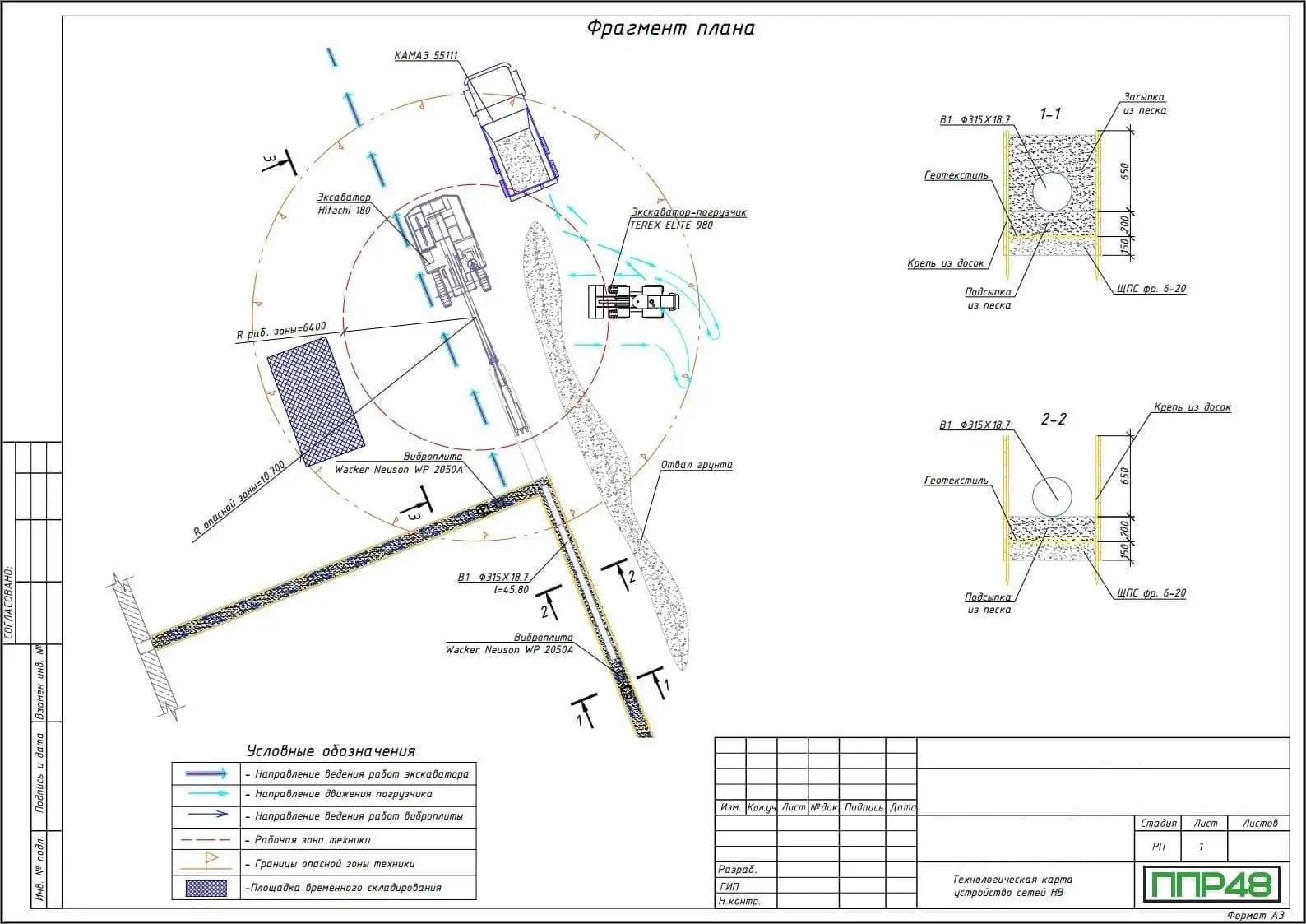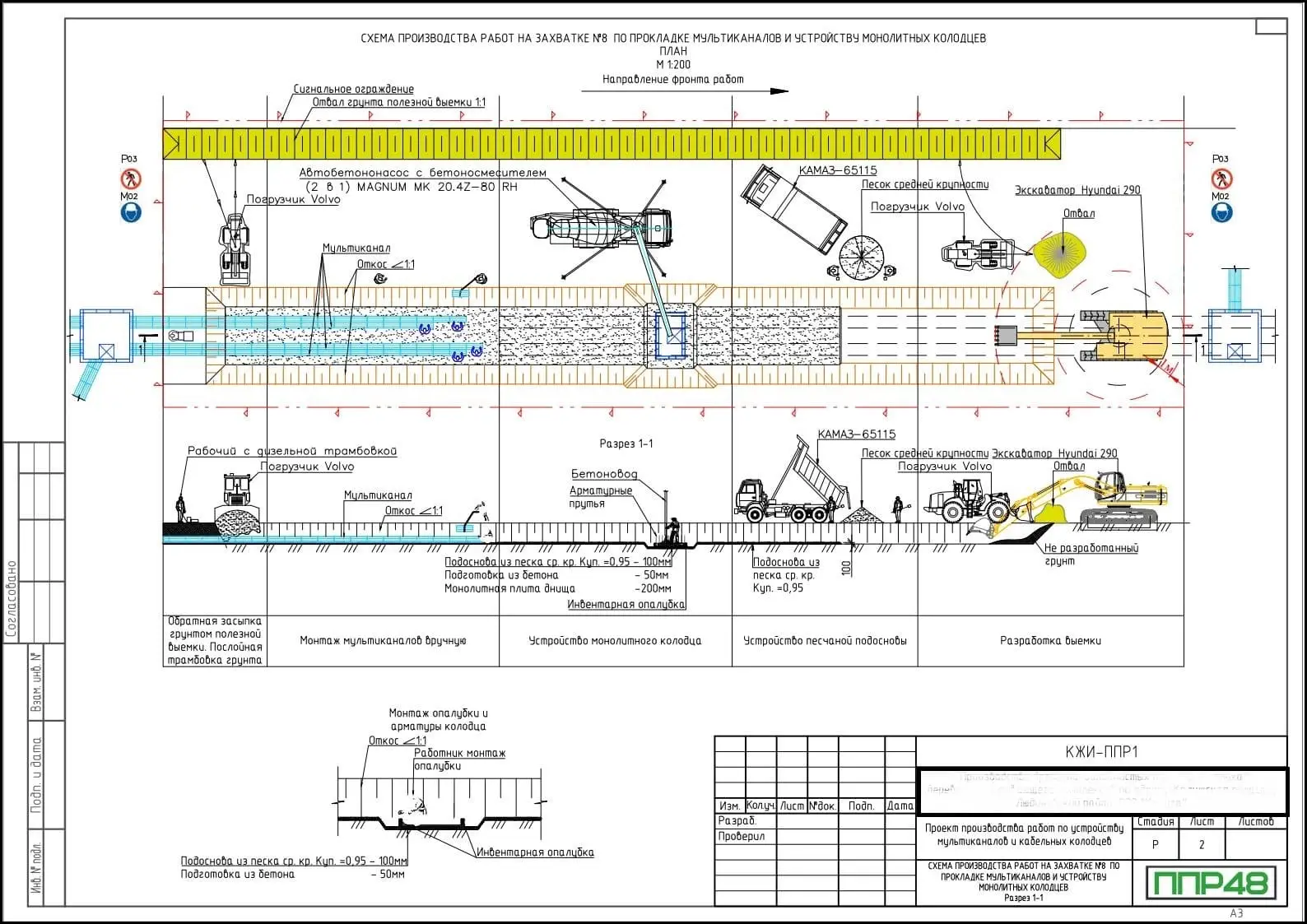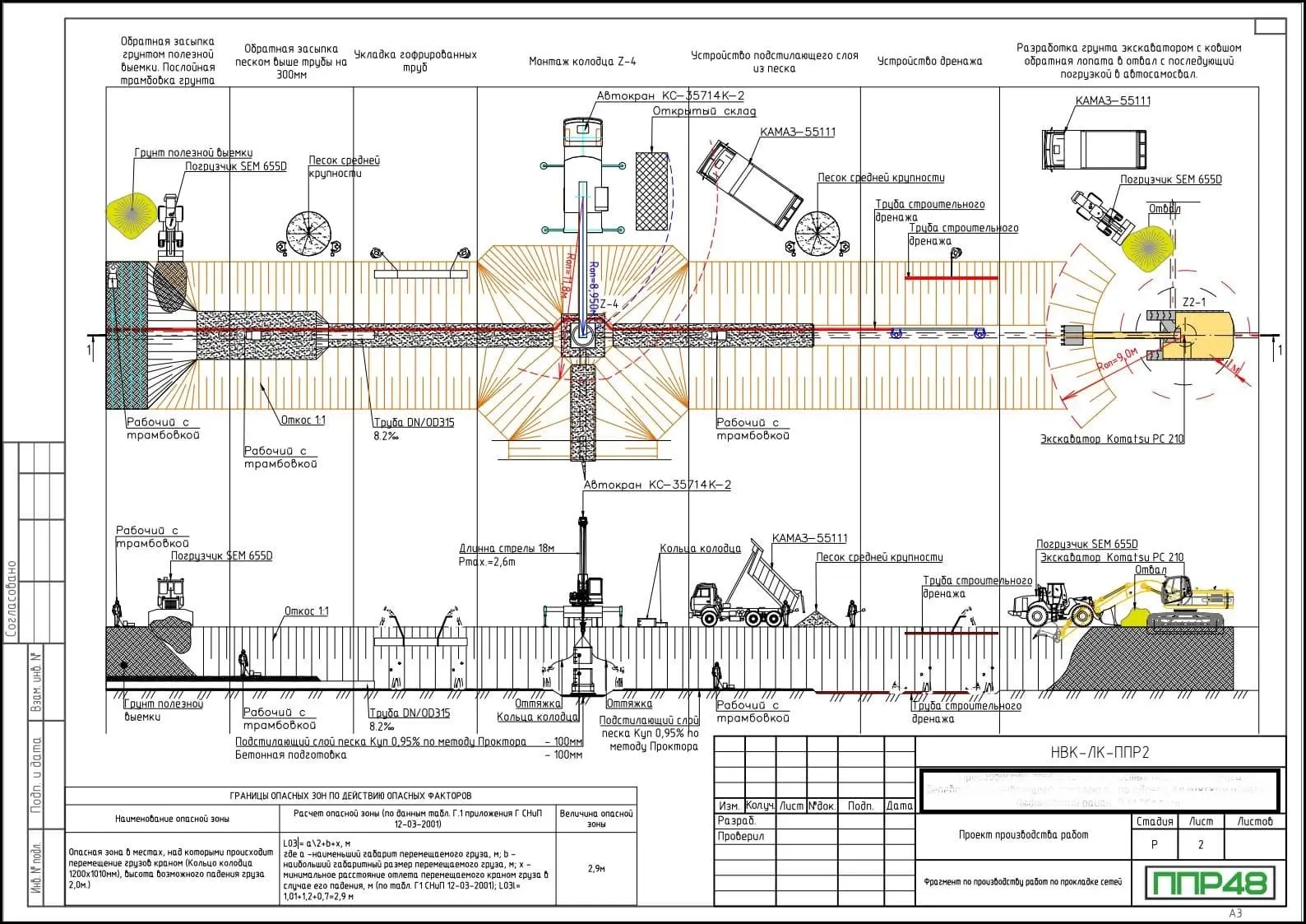 ППР на строительство, монтаж, прокладку трубы в траншее состоит из целого ряда технологических операций, включая обратную засыпку. Документ разрабатывается на основе исходной проектной документации.