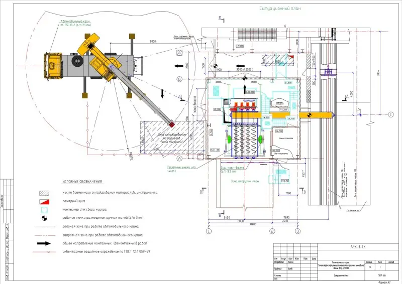 Кроме всего прочего мы в обязательном порядке включаем в состав ТК графические схемы и чертежи работы грузоподъемной техники, схемы строповки и складирования материалов и элементов оборудования.